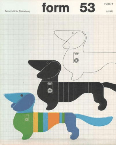Aicher is also credited for leading the design of the Munich Olympics logo and the first official Olympic Mascot, the dachshund “Waldi”.